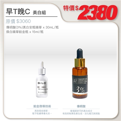 | 傳明酸(3%)美白安瓶精華30ml+煥白精華鉑金瓶15ml