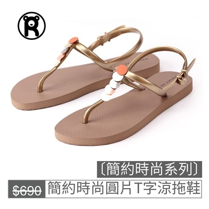 【ROCKY BEAR】簡約時尚圓片T字涼拖鞋 |