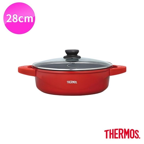 【THERMOS 膳魔師】巧易不沾鍋 TFP系列雙耳附蓋壓鑄鴛鴦火鍋 豐饒紅 28cm |