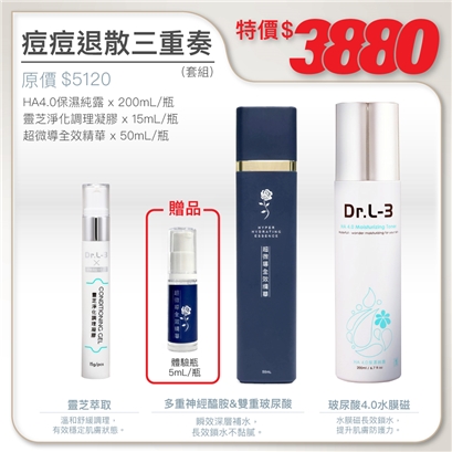 | HA4.0保濕純露200ml+靈芝淨化調理凝膠15ml+超微導全效精華50ml( 加贈5ml體驗品) |