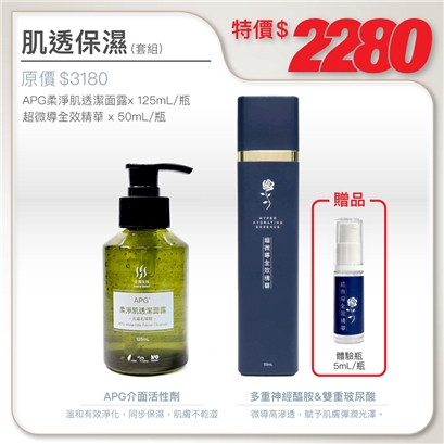 | APG柔淨肌透潔面露125ml+超微導全效精華50ml(加贈5ml體驗品) |