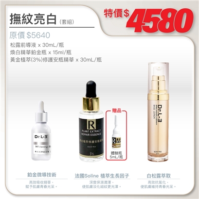 | 松露前導液30ml+煥白精華鉑金瓶15ml+黃金植萃(3%)修護安瓶精華30ml(加贈5ml體驗品) |