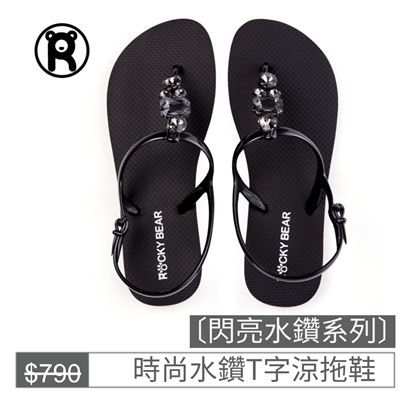 【ROCKY BEAR】時尚水鑽T字涼拖鞋-黑色 |