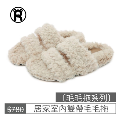 【ROCKY BEAR】居家室內雙帶毛毛拖鞋-米白色 |