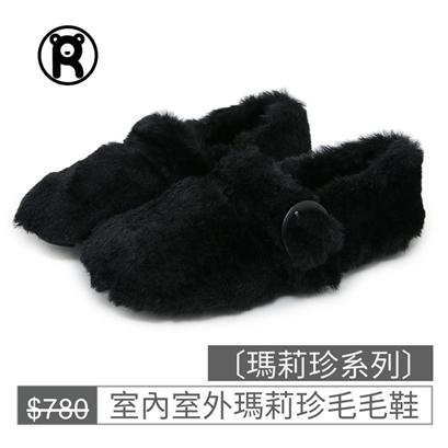 【ROCKY BEAR】室內外瑪麗珍毛毛鞋-黑色 |